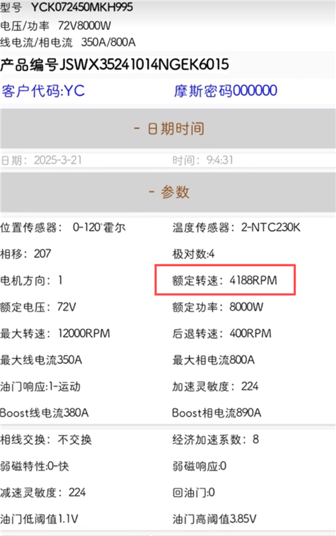 2、登录后可查看电机的各项核心参数信息,包括型号、电压、功率、线电流等,帮助用户全面了解电机运行配置。