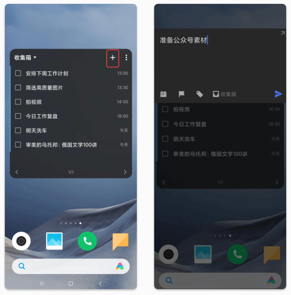 TickTick还支持通过「小组件」添加任务,你可以点击小组件上的「+」,直接进入添加任务界面,即可快速添加任务。
