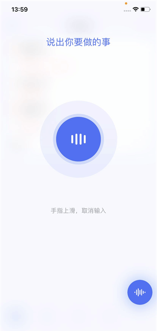 长按「+」按钮,启动语音输入,当看到界面提示「说出你要做的事」时,说话创建任务,松手即可完成语音输入。