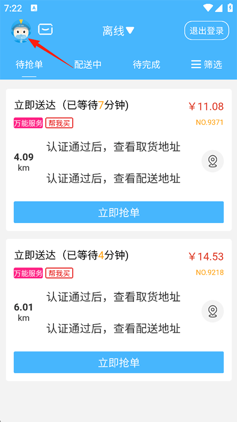 1、打开登录抖送骑士版,在首页点击立即抢单;