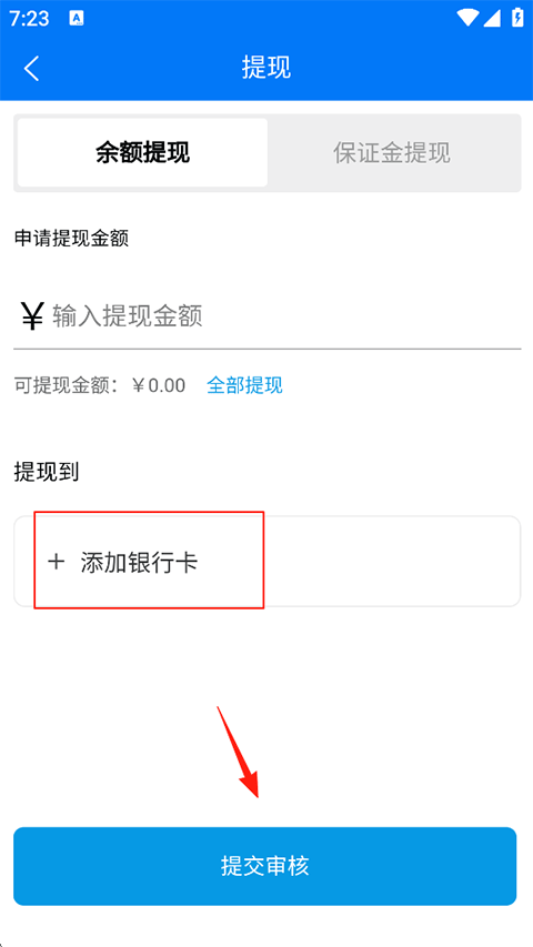 4、输入提现金额、添加银行后点击提交审核即可。