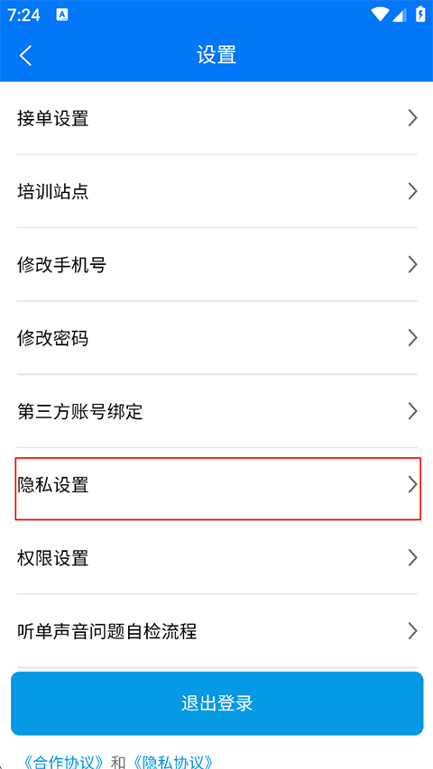 2、选择隐私设置点击进入;
