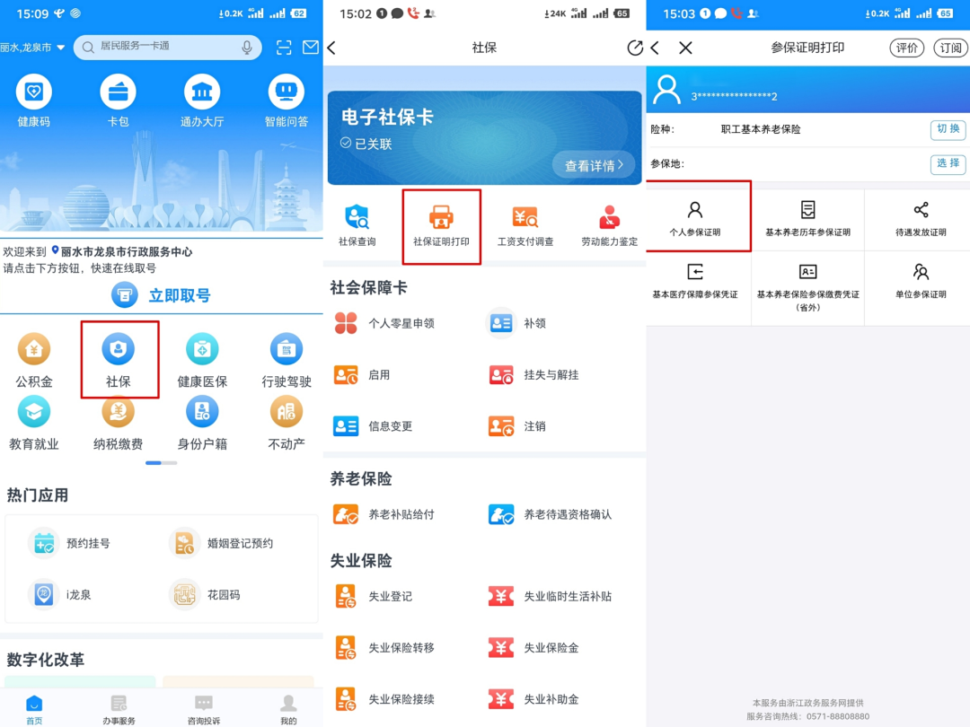 浙里办APP如何进行个人参保证明打印