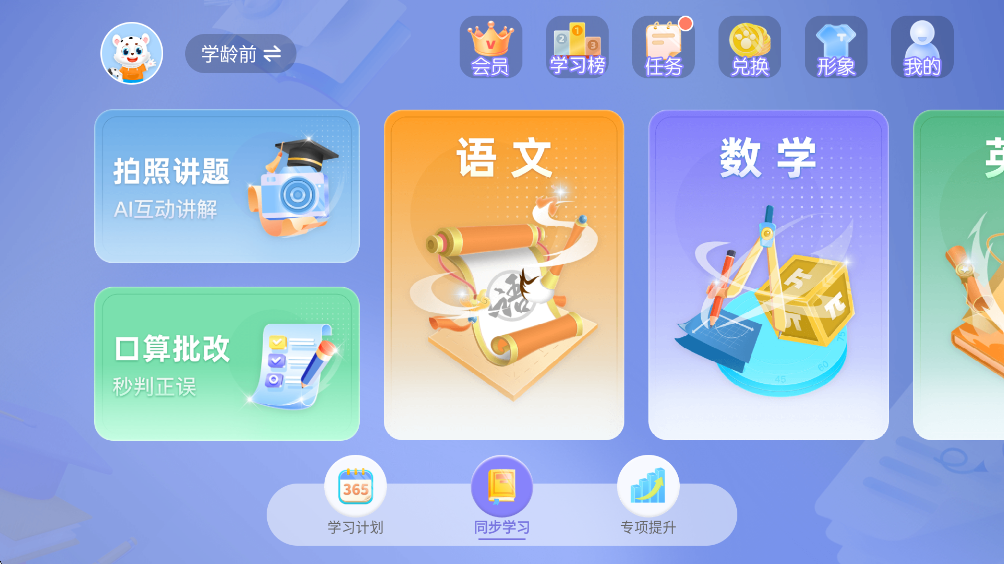 集成拍照讲题、作业批改、听写口算、单词听力等18项专项工具,实现自动化辅导与即时反馈。