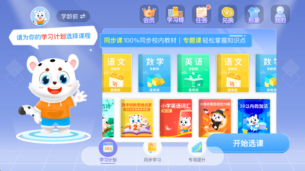 完成学习任务就获得学币,多种学具玩具等实体礼品与卡通形象、背景、皮肤装扮免费兑换,帮助学生养成良好学习习惯,让孩子有目标,有动力,爱上学习!