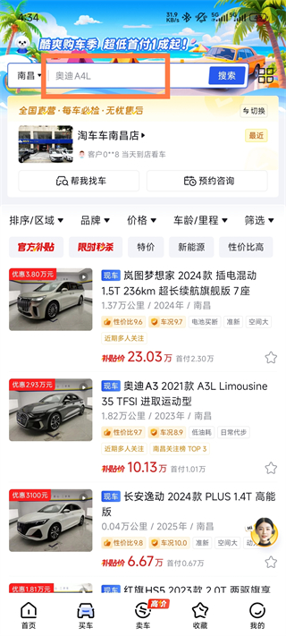 1、选择你的城市,系统会优先为您推荐填写的城市以及附近的车辆,包括全国车辆