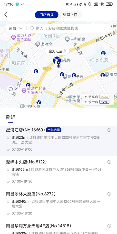 2、打开手机定位,点击选择门店。你可以进入搜索的附近定位信息页面。