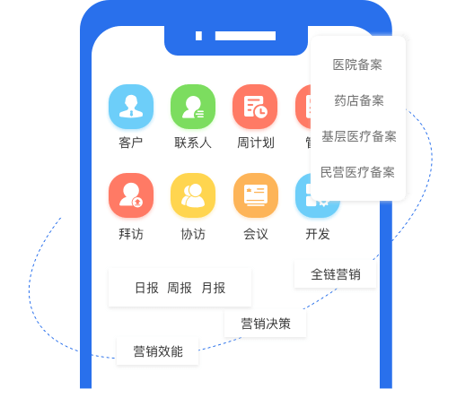 实现自营团队全面管理渠道终端目标客户资源、全链营销流向业绩数据、开发、拜访、学术会议、临床项目等全过程业务管理,以及营销效能统计和营销决策。