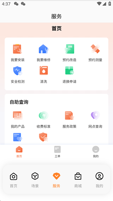 增设独立的服务板块,连接售前售后,提供在线报装、报修及自助查询等多场景服务能力,便捷触达。