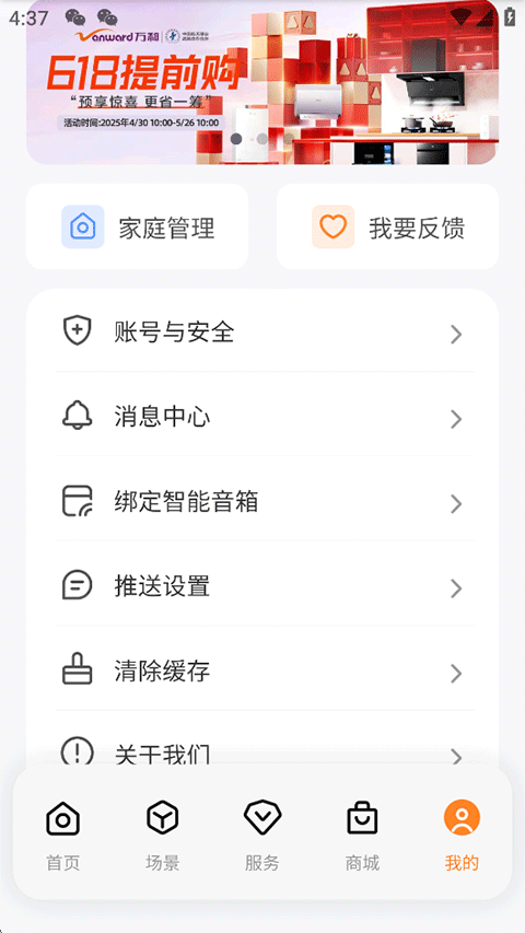 8、最后您还可以在我的页面体验家庭管理、绑定智能音箱等更多特色功能服务。