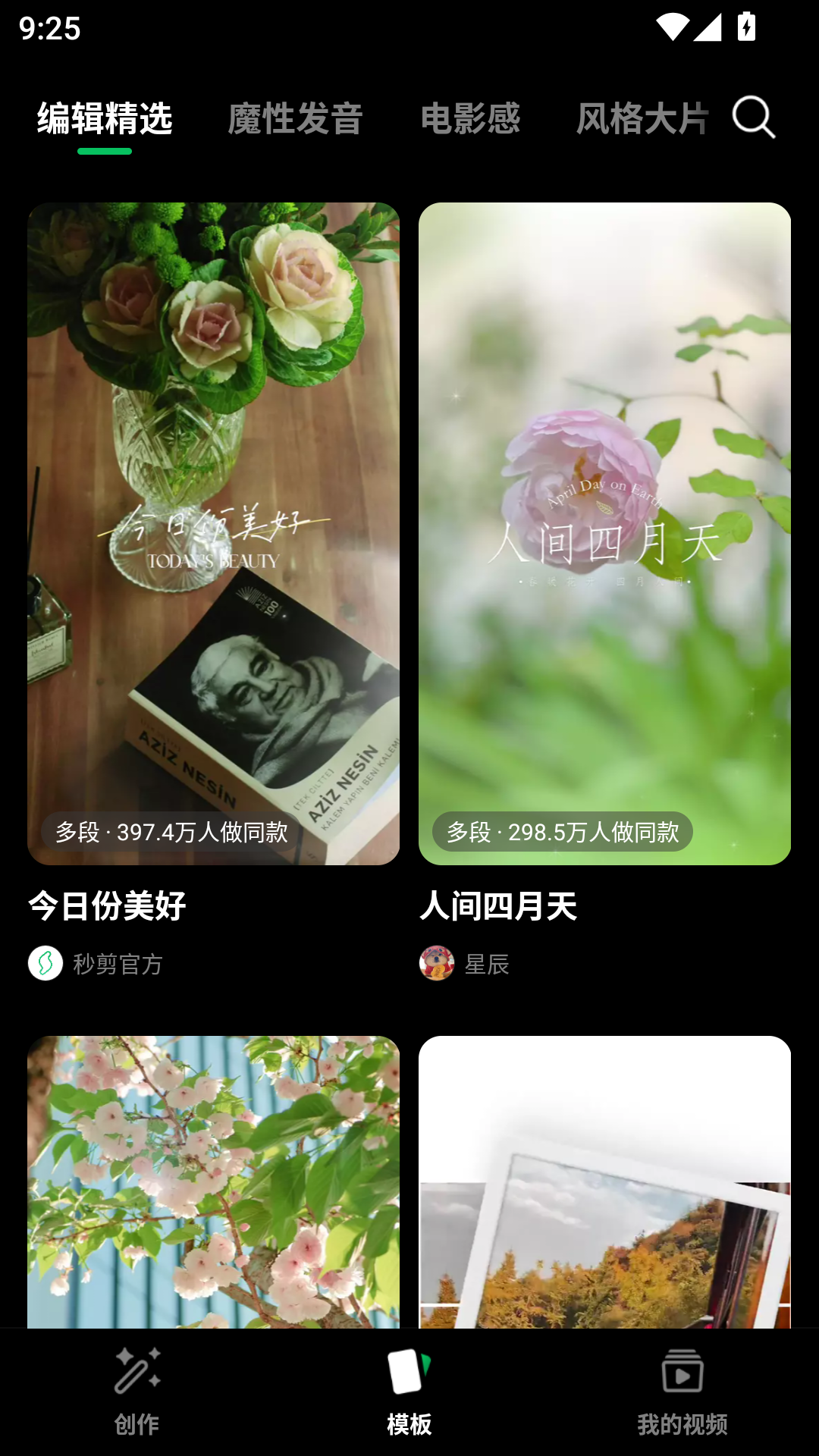 不会剪?套它就完了。滤镜、花字、转场、配乐——挑个喜欢的模版,一键生成大片感。