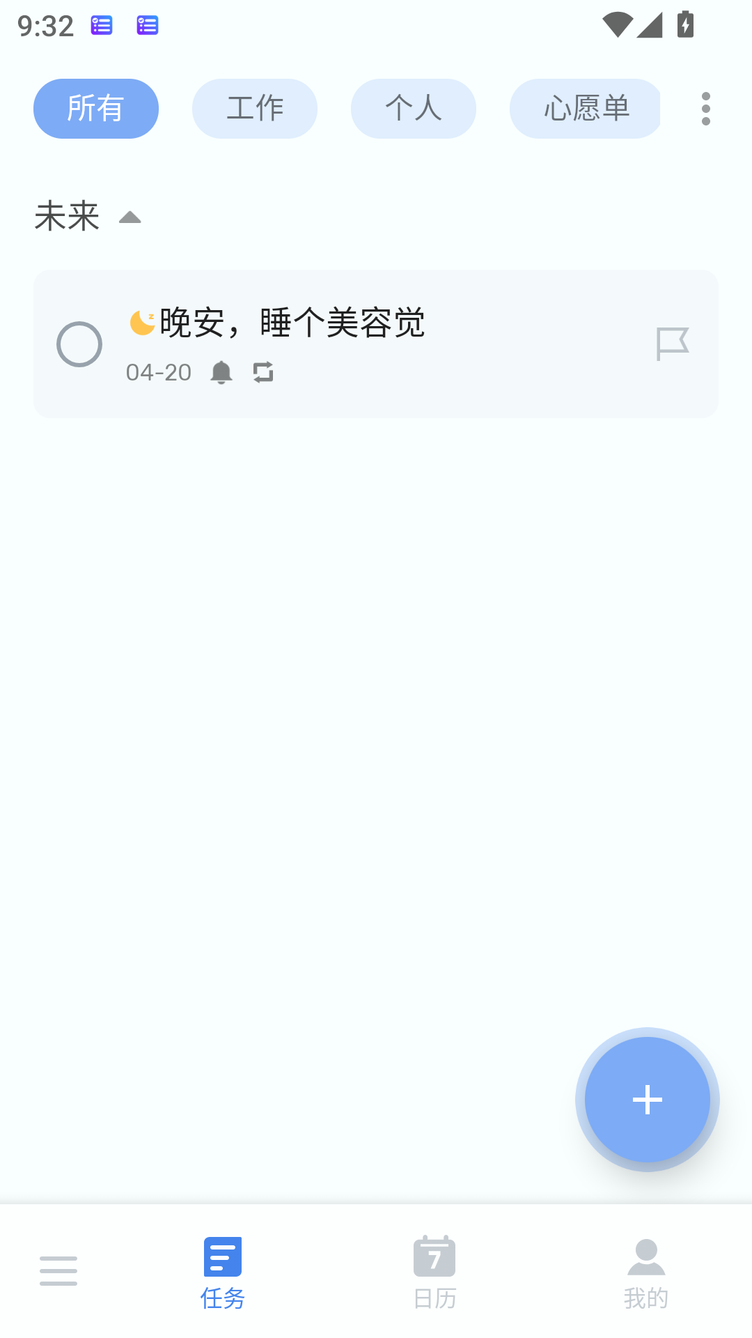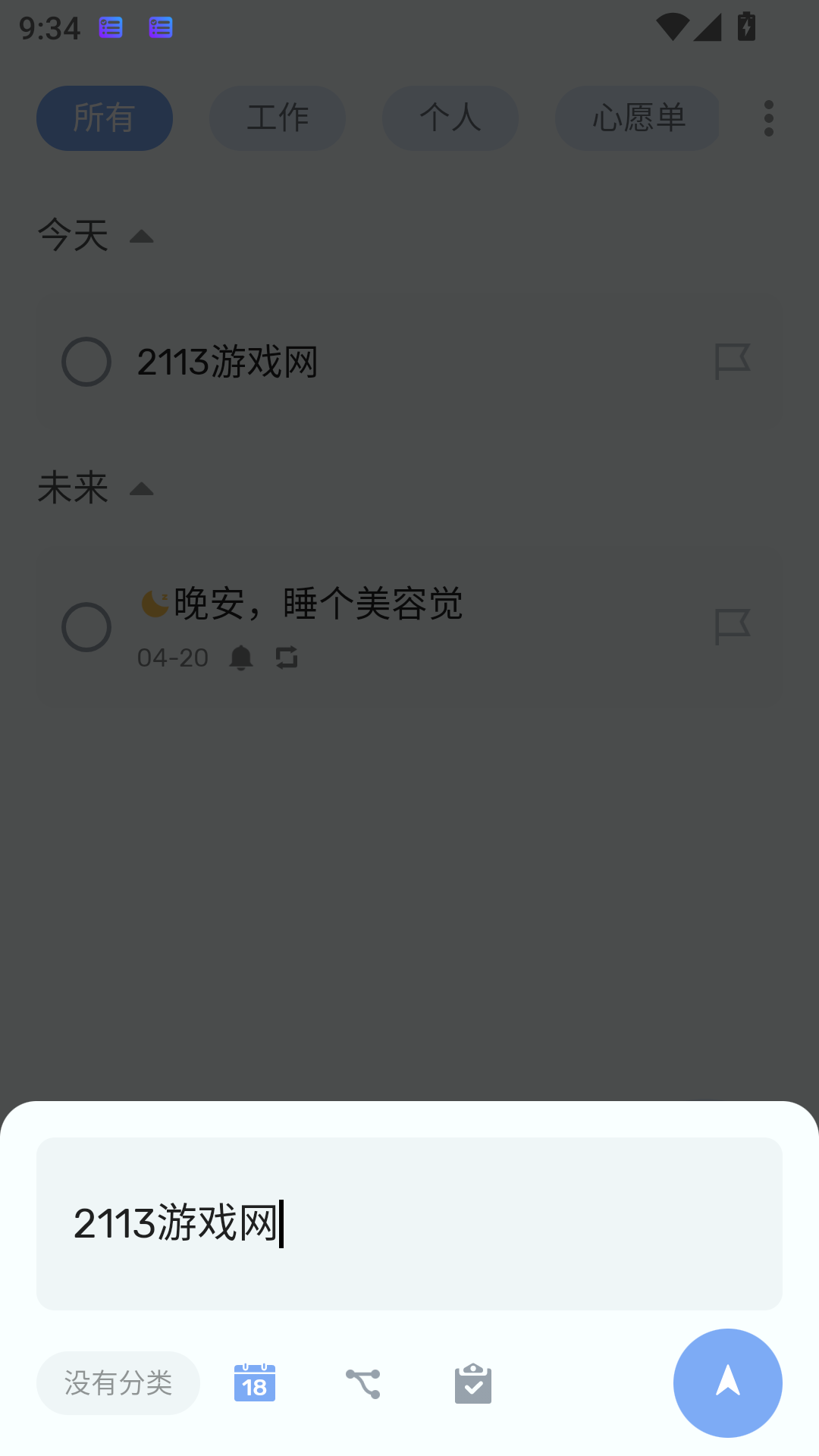 支持创建待办、工作任务、心愿单、生日提醒等,可添加时间提醒,到点推送通知。