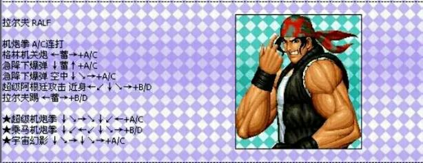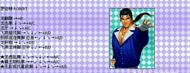 (一击必杀:远距↓↘→A》冲跳B》(↓)B》↓↙←A简单的一招)