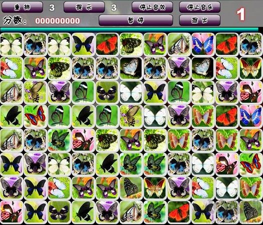 3、在游戏中我们使用鼠标点击相同的图标来操作蝴蝶,如果图标间的连线转折不超过两次并且不经过其他图标就可以把一样的花蝴蝶给消除了!