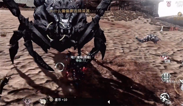 3、完成挑战之后,玩家可以看到场景里出现了一个体型庞大的黑色蜘蛛,它就是要对抗的地穴魔蛛,看到角色之后要先释放招式,对方在受到攻击之后需要适应一段时间,在这个时间段内要先把周围出现的小怪清除,接着才能再去对抗boss,挑战过程中对方会触发螺旋攻击,要释放招式把对方锁住,也可以选择暂时移动到其他的位置躲避,后期对战的过程中要逐渐把敌人逼向有障碍物的区域,对手能释放原地招式,不用担心对方触发螺旋攻击。