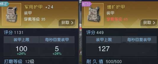 然后就是防具系统,游戏里的防具从头到脚分为多个部位,每个部位和武器一样,也最高到金色品级。每个部位都有多种属性,影响的是角色基础属性,诸如角色的生理状态,移动属性、血量等等。也有专门的改造玩法,可以加入特效芯片,加固配件等等,唯一思路就是评分越高的越好。防具还有个额外系统叫重型军用护甲,简称重甲,这个类似于额外的防弹衣栏,会影响你的护甲上限和恢复,属于战斗专属属性,非常重要,基本上35级以后解锁,都使用金色品级来撑属性。