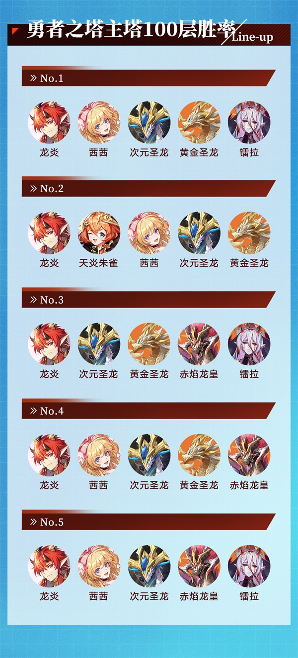 在主线剧情的通关中,使用率前五名的阵容大部分都是大家熟悉的精灵,以龙炎或龙君炎为核心的火阵精灵在推图中能帮助大家尽快达成通关噢。