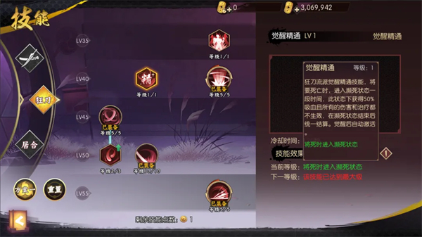 ④拔刀斩:拔刀斩是居合流派的技能,狂刀手里的拔刀斩没有了强化效果伤害就非常的尴尬,PVE中直接放弃,但PVP中可选择+1点满后置作为骚扰技能(拔刀斩的攻击距离还是比较远的),也可以点满作为连招衔接,当然不点也可以,依据个人的连招习惯去选择。