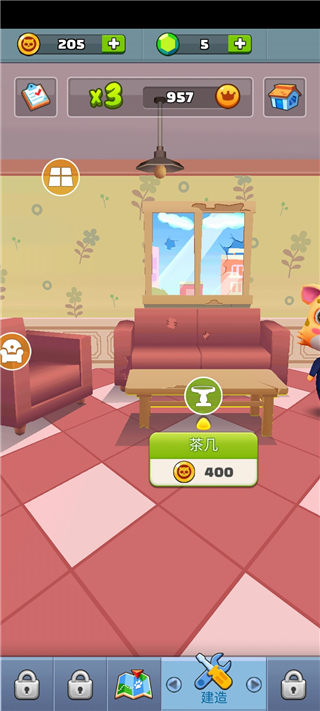 4、点击维修我们即可前往客厅,在这里我们可以进行打造你的小房间;