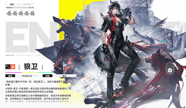 裂地者狼群氏族的成员,常年漂泊在外,见过人性的黑暗面,心智成熟冷静。擅长侦察作战,能清楚掌握周围情况,用双手剑攻击,伤害频率高,还能和敌人临时协作完成任务。