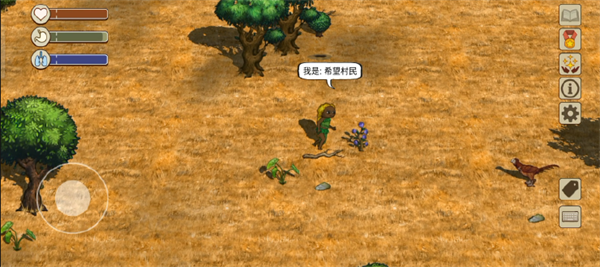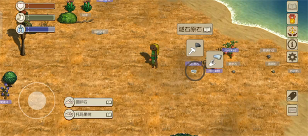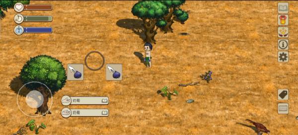 取完名字下一步就是开始找食物和制作生产工具。游戏初期我们可以直接采集并食用的食物有三种托马果、奶葡、鸟蛋。鸟蛋能够回复的饱食度最高但是产量少,在跑图探索中手里拿着一枚鸟蛋可以随时回复较多的饱食度。
