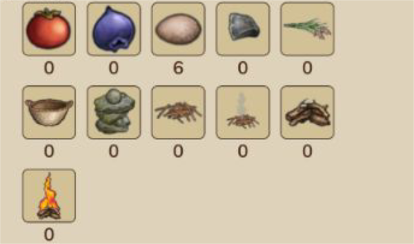 有了柴之后点燃小树枝并加入柴,我们就得到了火。火能够驱赶附近的野兽是家园安定的核心,但是火持续的时间有限,熄灭后会变成灰;灰和点燃小树枝作用相同,只需要新加入柴就能再次生成火,如果一段时间内没有在灰中加入柴,灰就会自然消散。