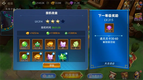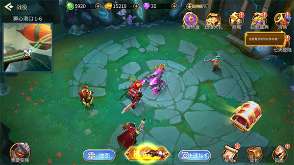 1、万界英雄为了保护各位“肝帝”们,也引入了挂机机制,帮助玩家在离线的同时累计游戏资源,佛系护肝,睡个安稳。而大量资源都是由挂机获得的,比如英雄升级需要的英雄精华、经验、金币三个资源巨头。