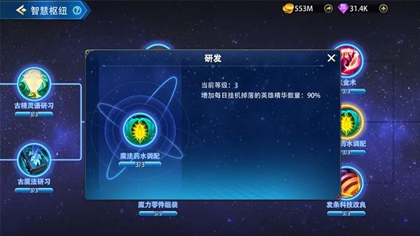 2、除此之外,随着玩家主线章节的不断提高,还会解锁“智慧枢纽”,点亮分支可帮助玩家们额外获得更多资源: