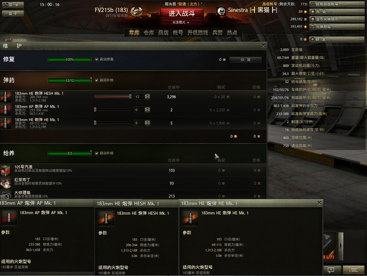 在黑枪的时候,要注意183的扩圈非常大,尽量做好类似火炮的预瞄,此外183的HESH飞行速度非常慢,务必做出更多的提前量。183的常用弹由于HESH的机制关系,打履带/外部零件便永远不出满伤,要对计划外的提前引爆/未击穿做好准备。在拦截小车时,记住自己有5.04m这261银币HE水平的溅射,打不中但是打的差不多,炸断了对面的腿也能救自家火炮一命。