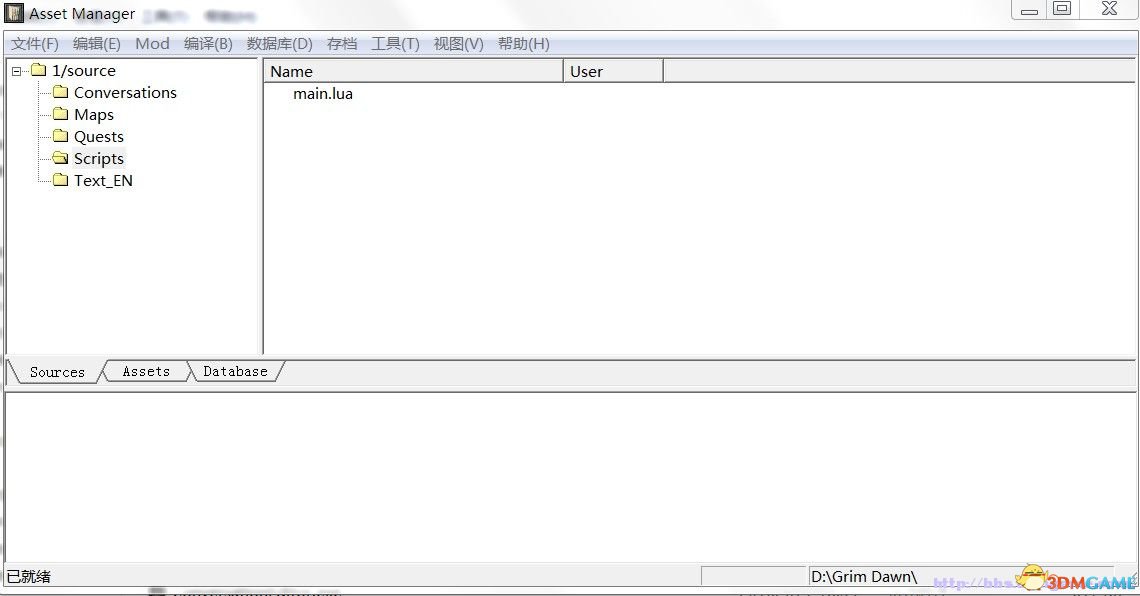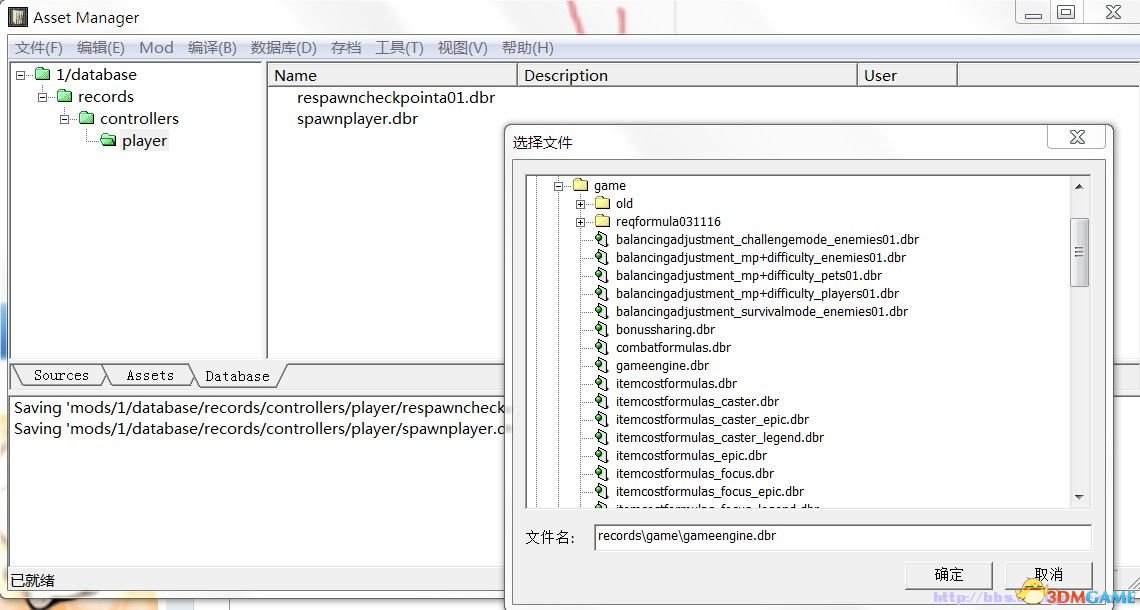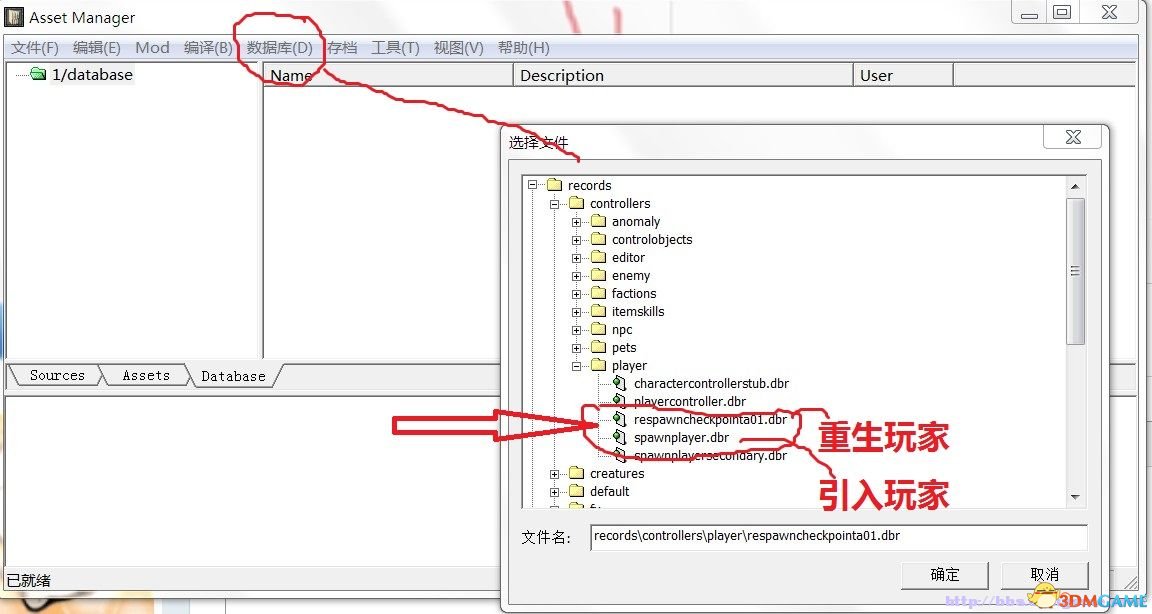 继续打开AssetManager中文的是AssetManagerchs 脱机工作,进入后点上边的mod 下拉菜单点select 右边选上1,选左边中间处的database标签: