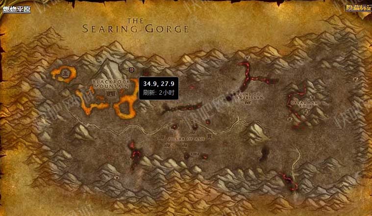 裂盾军需官位于燃烧平原【黑石山】附近,坐标为(34.9,27.9)。