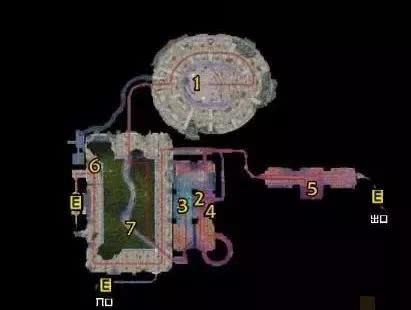 这是目前位置入口/出口最多的一个副本,一共有3个入口,在打完最后的boss后还有一个快捷出口。其中两个正面的入口分布在DM里,一个是在竞技场区的东侧,二是在进入竞技场区前的三岔路口右转走到底。另外一个入口在部落据点的东北方的一个圆形废墟里,需要钥匙才能进。
