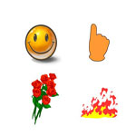 疯狂猜成语和看图猜成语图片中,一个笑脸,一只手伸着食指,一个手指,一束花,一团火焰,(打一成语)答案是什么?