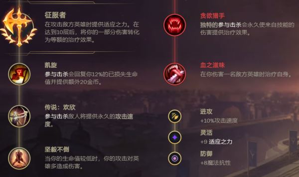 以目前来说,皎月还是更加适合带征服者。小编认为目前版本中的皎月更加偏向于半肉法师,但又比传统的半肉法师(加里奥、乌鸦)更加灵活以及爆发更高。副系这里,个人推荐主宰系的双回血,这也比较配合征服者。或是说副系带巫术中超然+风暴启迪也是很不错的选择,总之面对不同英雄要以不同符文来应对。