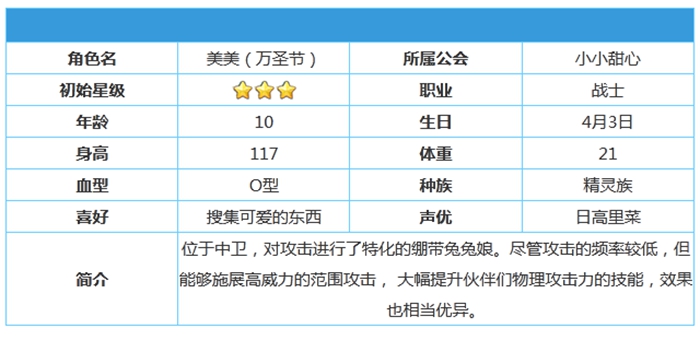 公主连结万圣美美是一个群体输出能力出众的角色,还能够给队友大幅度增加物理攻击力,就是有点小代价。下面就让我们来看看公主连结万圣美美的属性如何吧: