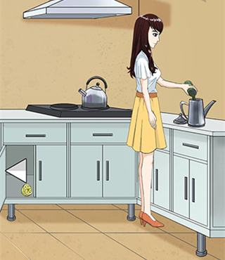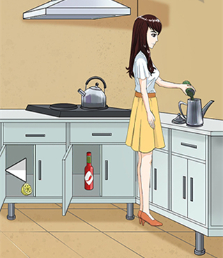 等女主走开后打开柜子,拿到柠檬和辣椒酱。