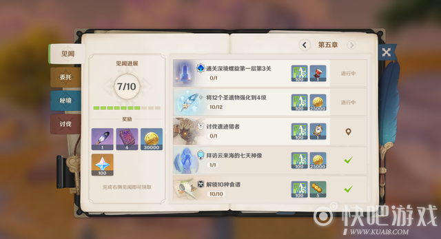 原神第五章见闻有什么条件和奖励?相信很多玩家都对这个问题感兴趣,下面小编就为大家带来原神第五章见闻奖励一览,一起来看看吧。