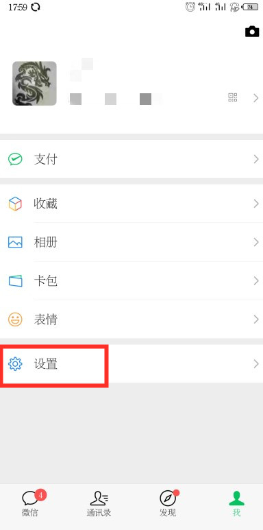 2、在我的页面中点击设置进入设置页面。