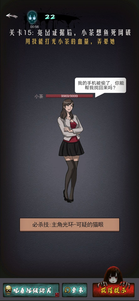 恐怖公寓手游第15关通关攻略关卡15:拖动3个选项框合成一个,秒杀对方。