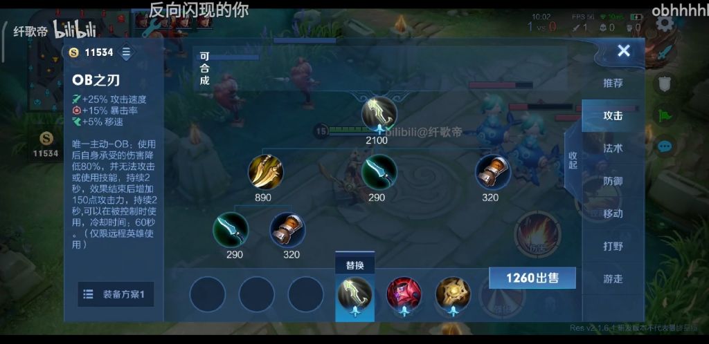 王者荣耀体验服隐藏装备一览OB之刃(2100金币)