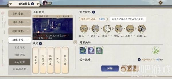 疑案寻踪系列——蔽云疑案,当集齐案件所有风闻后可激活。