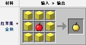 PE版:和PC版1.9以下合成方法相同,都是8个金块+一个普通苹果