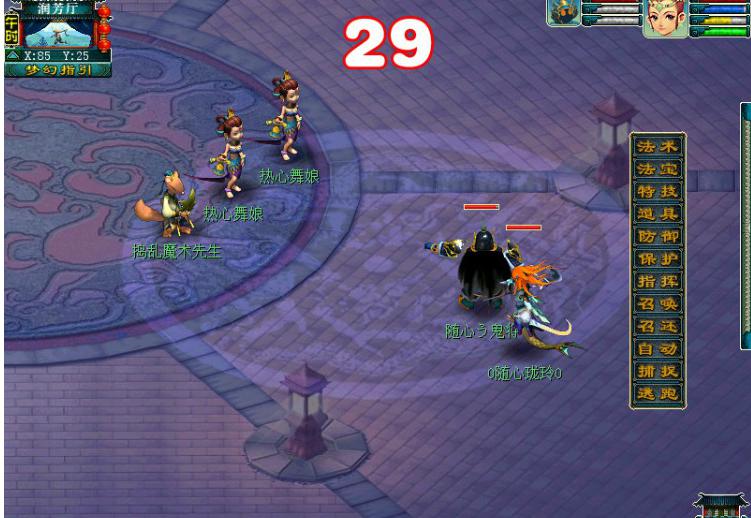 这里就是战斗环节了,场景中会出现很多音乐鼓,点击就是切入战斗,战斗只有2种怪物:热情的舞娘-千年蛇魅造型,魔术先生-白老鼠造型,我们只需要普通攻击白老鼠,热情的舞娘会在第二回合逃跑的,很简单。