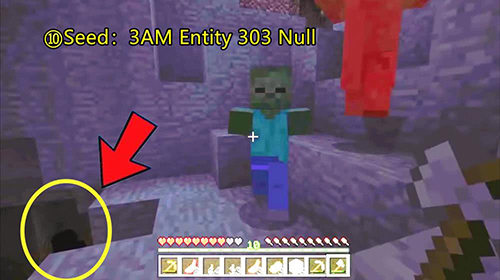 Seed:Entity303;在303种子中,通过一个特定的召唤阵,可以召唤出303。然而,请神容易送神难,召唤出303后,这位玩家在游戏中迅速的被实体303杀死了。