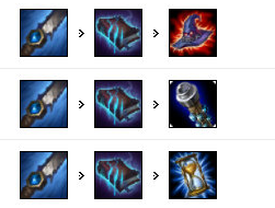 死歌的第一个大件推荐选择蓝色AP打野刀。蓝惩戒稳定的减速配合W技能可以让敌人寸步难行!进而显著提升死歌Q技能的命中率。之后如果做出鬼书来进一步提升法穿,配合法穿鞋在中期可以最大化大招的伤害!之后补出金身帽子等装备即可。