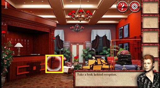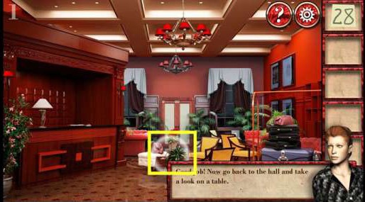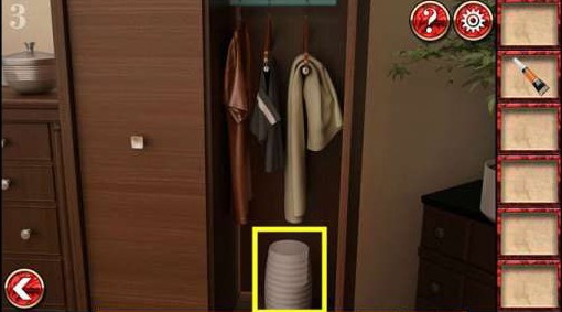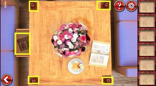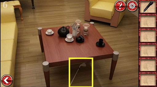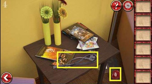1、在左边茶几上拿到别针。