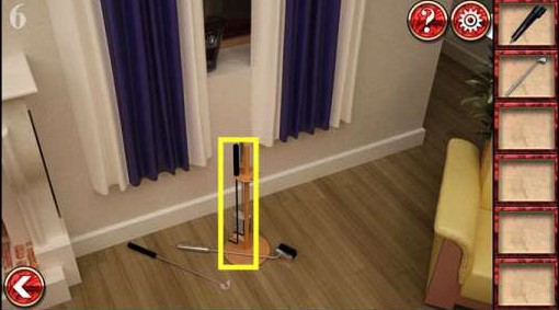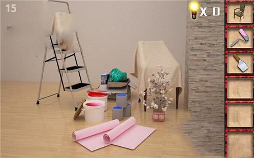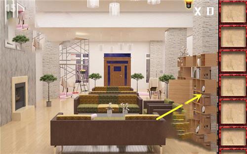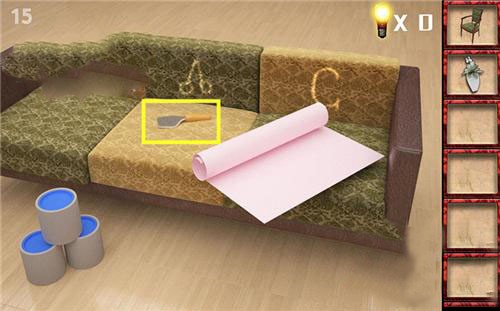 3、在前面沙发把靠背放好,看到提示并拿到铲子。