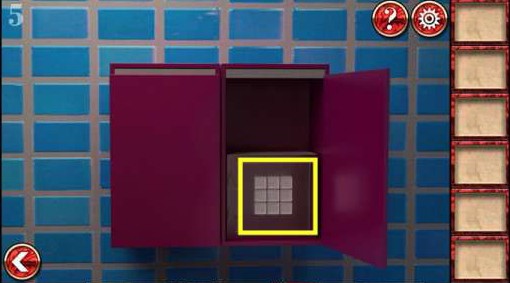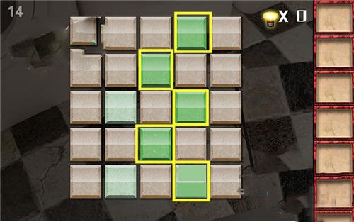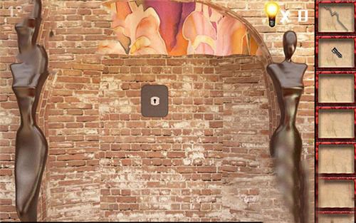 7、把方块拼图拼在左边墙壁的壁画上,得到钥匙,开门,过关。