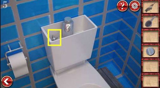 7、将钩子与铁链结合,将游泳池的水放掉,然后将池底的乌龟拼好拿到钥匙。