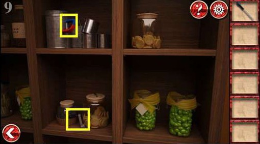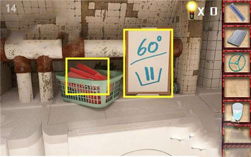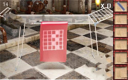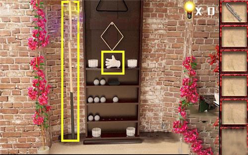 5、在左后方的墙上根据书里的提示来调整,完成拿到铲子。